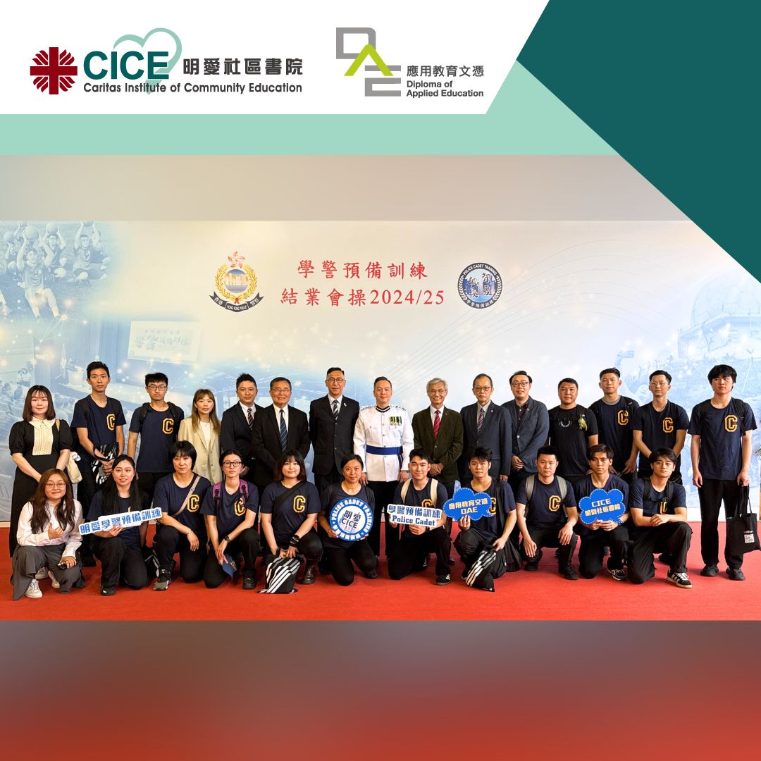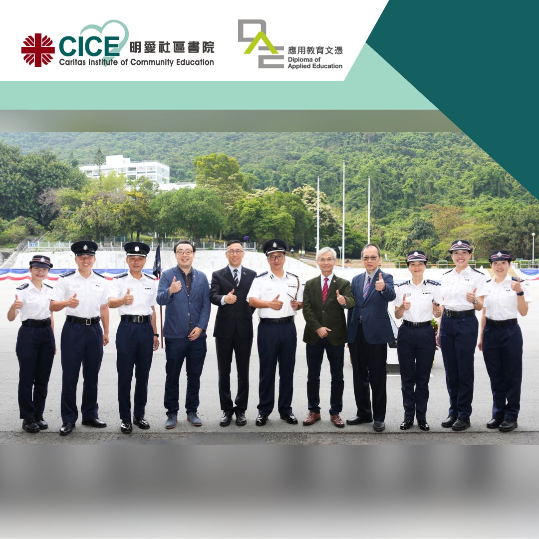 恭喜明愛社區書院(CICE)與警察學院合辦嘅全日制應用教育文憑(DAE) 學警預備訓練 (Police Cadet Training) 課程首屆學員100%由警察學院順利畢業,並由新任警務處處長周一鳴親臨檢閱。